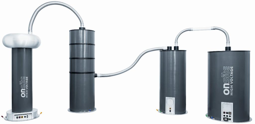 Equipo de fácil ensamble y concepción modular para ensayos de cables de alta tensión de hasta 230kV. Con un peso total de solo una tonelada dividida en 8 cajas el sistema simplifica los temas de logística para pruebas a altos niveles de tensión. El sistema permite realizar ensayo del cable, medida de facto de disipación y ensayo y diagnóstico de descargas parciales.
